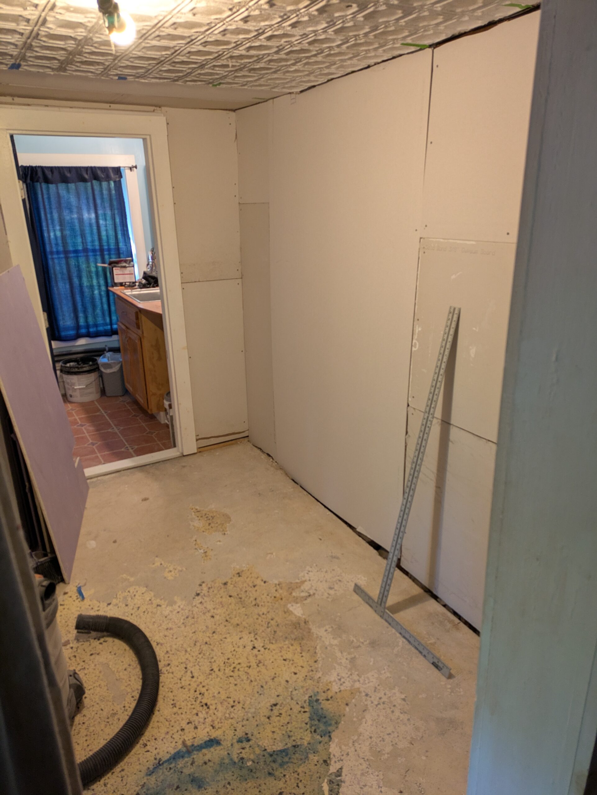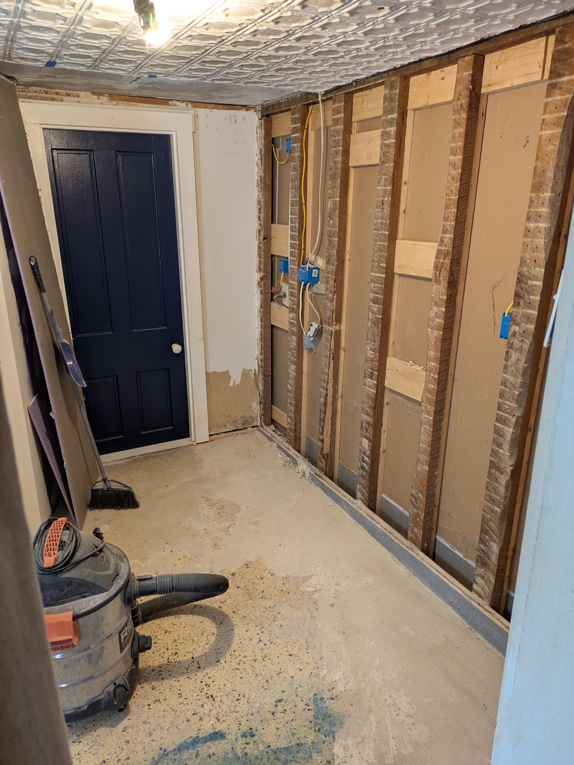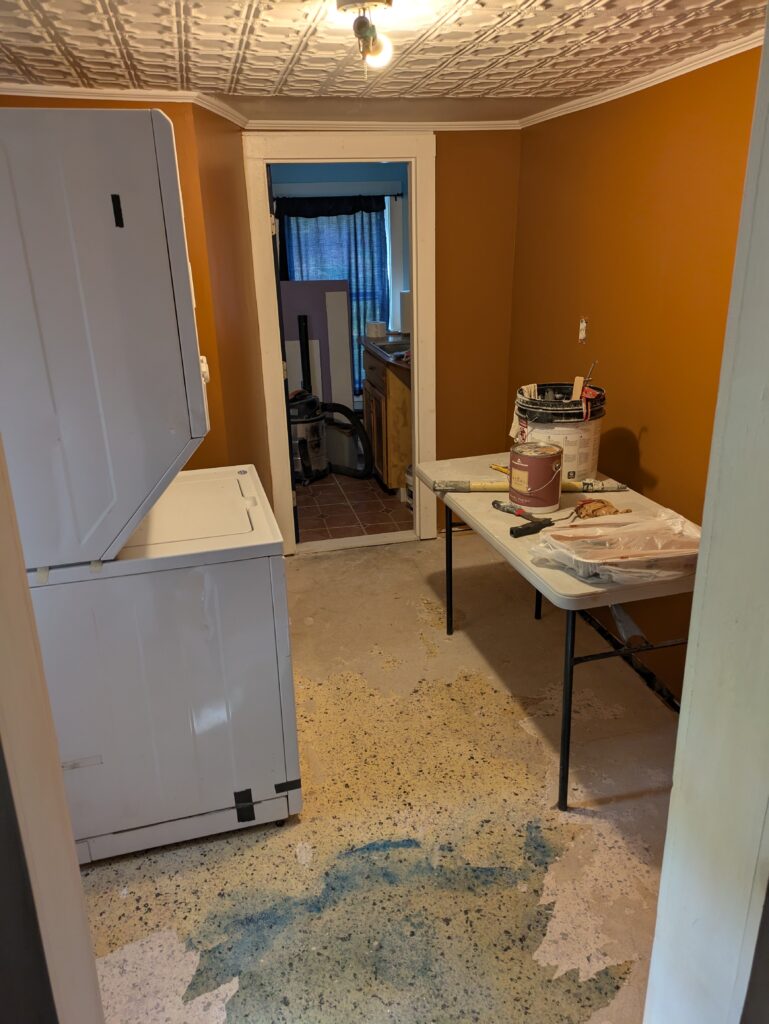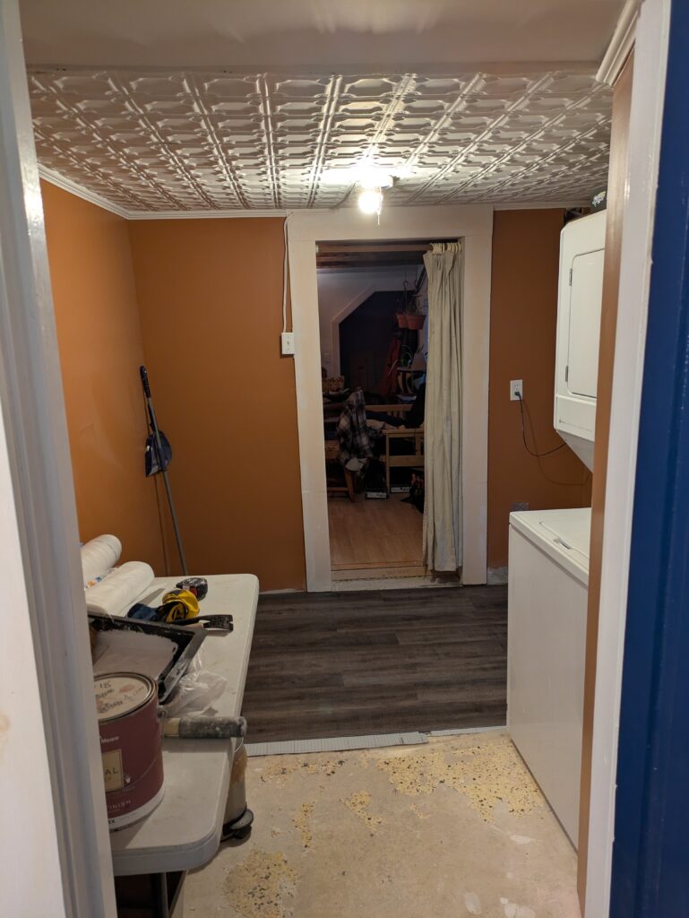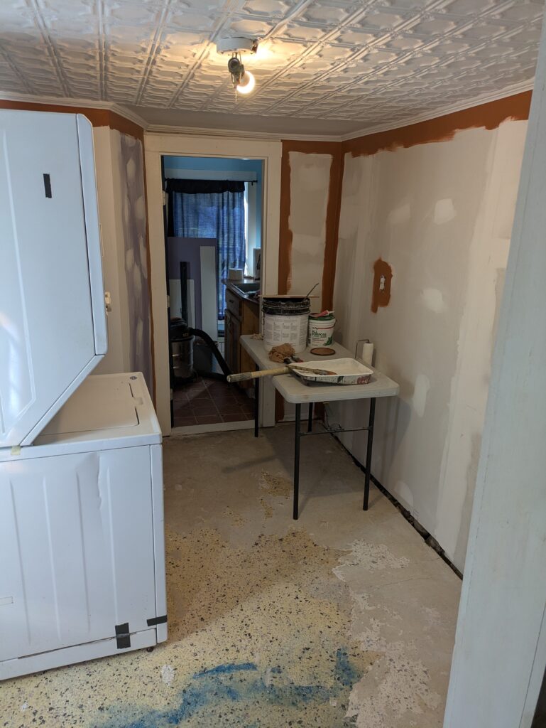 No rest for the weary though, as we now have to put the laundry room back together. I decide to rip out and re-sheet one last crumbling wall of lath and plaster. And then a fresh coat of paint all around!