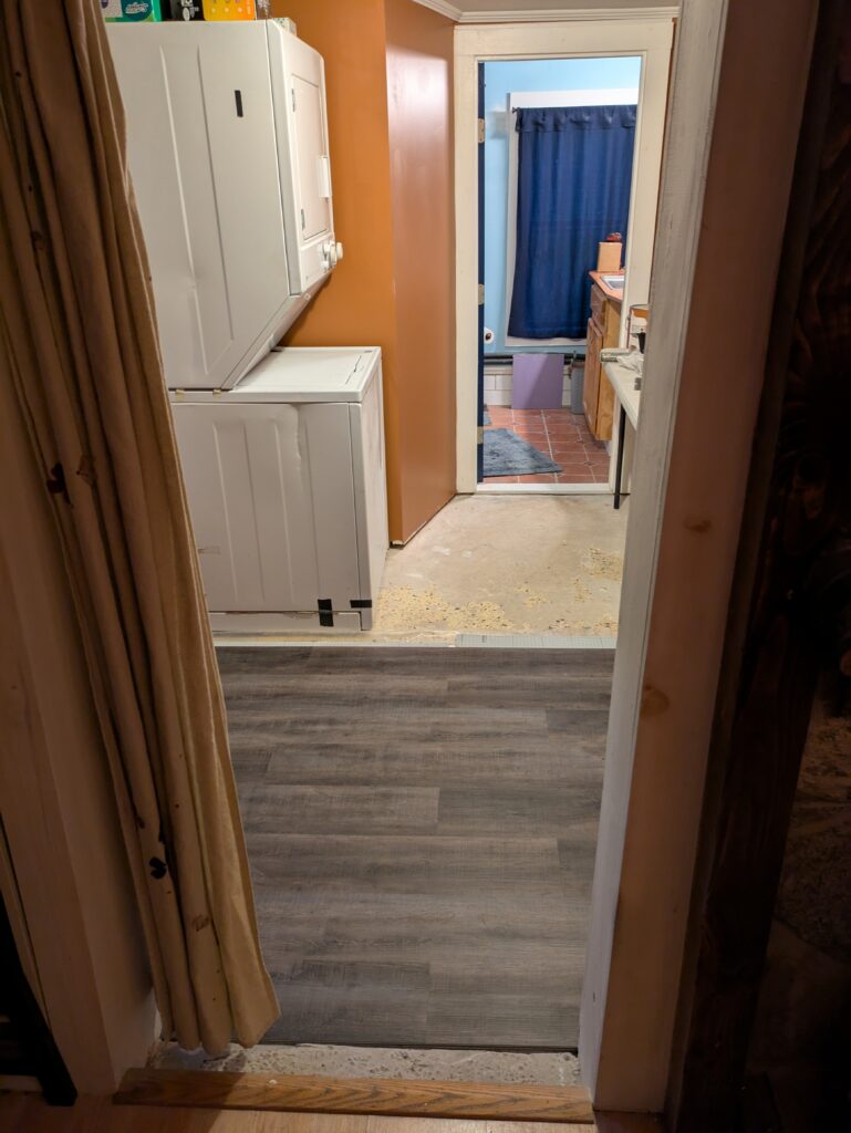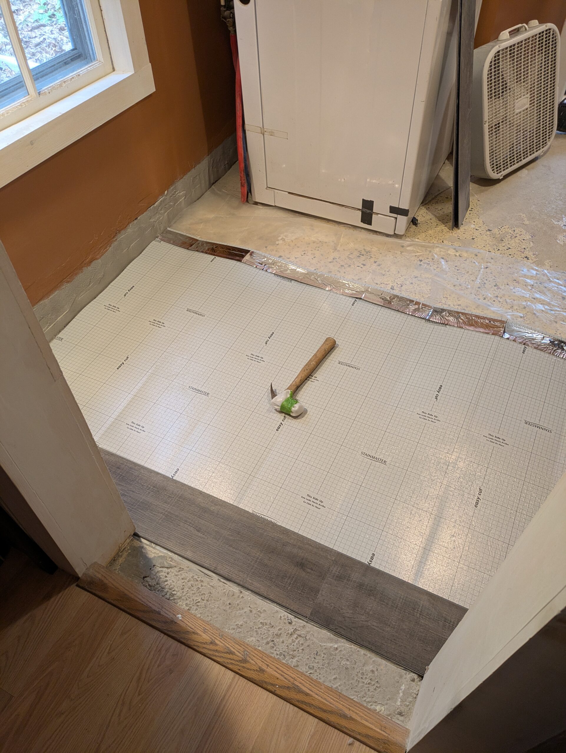 Finally its time for the flooring before shelves and tools go back in.
